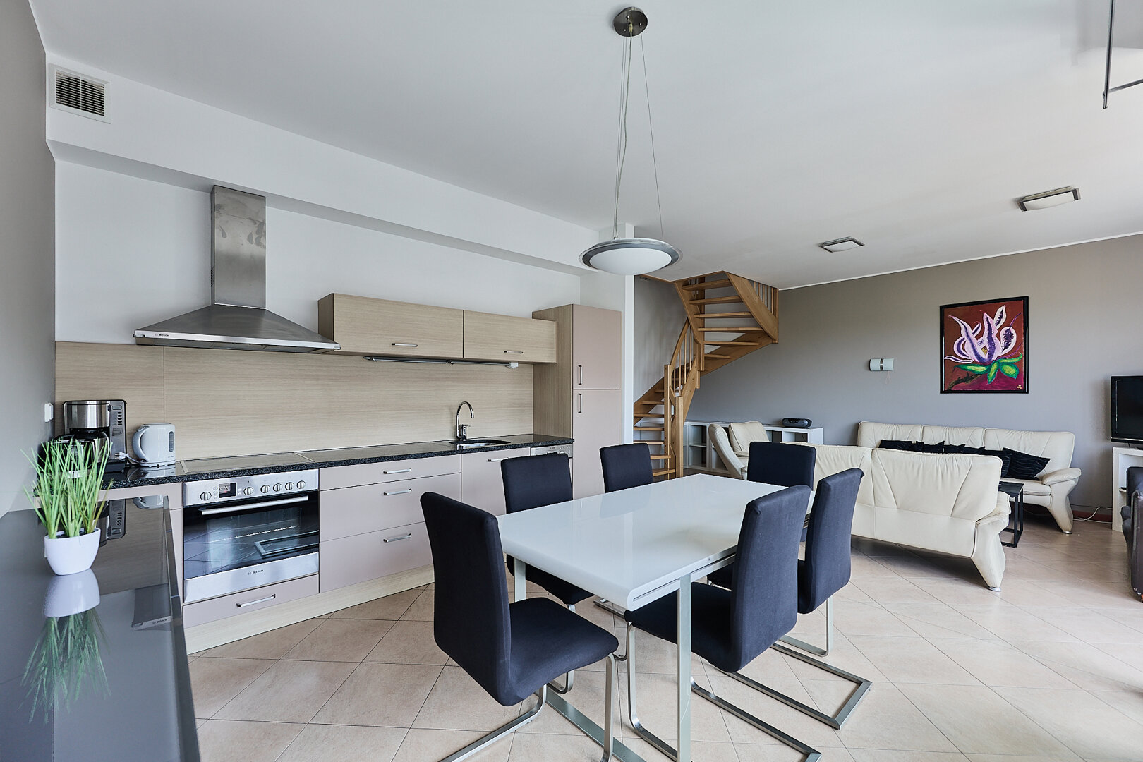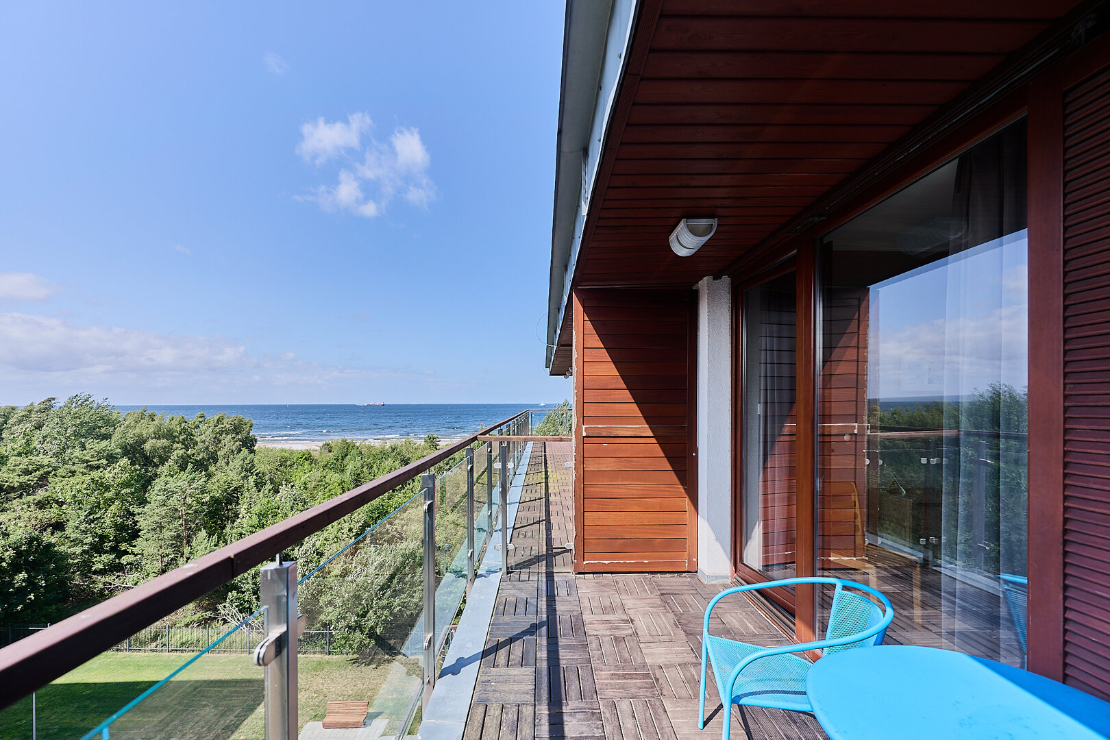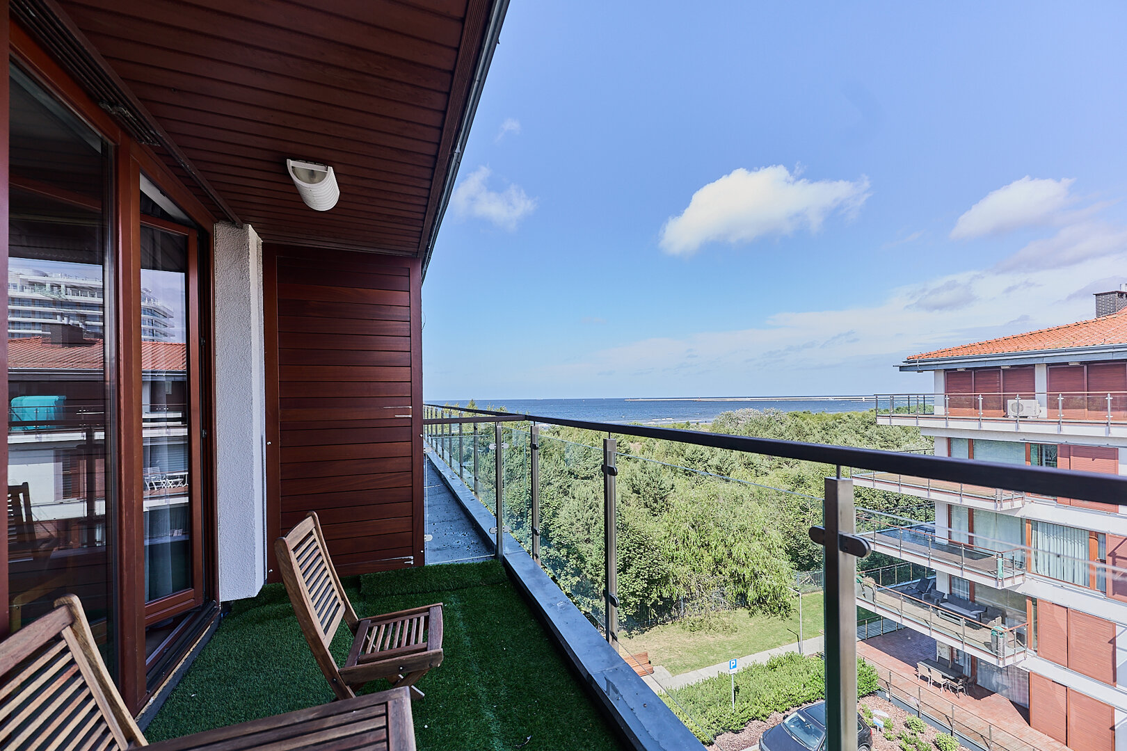 Geräumige 3-Zimmer-Wohnung im 3. und 4. Stock in der Anlage Baltic Park Plaza mit Meerblick. Auf der unteren Ebene gibt es ein Wohnzimmer mit einer gut ausgestatteten Küchenzeile (Spülmaschine, Backofen, 4-Flammen-Elektroherd, Wasserkocher, Kaffeemaschine, Toaster) und eine Toilette. Vom Wohnzimmer aus gibt es einen Zugang zur Terrasse - Westseite. Im Obergeschoss befinden sich zwei Schlafzimmer, ein Flur mit einem geräumigen Kleiderschrank und ein Badezimmer mit Dusche und Waschmaschine. Eines der Schlafzimmer hat ein Doppelbett und ein Einzelbett, im anderen ein Doppelbett. Jedes der Schlafzimmer hat eine Terrasse - Ost- und Westseite. In der Wohnung gibt es einen drahtlosen Internetzugang. Darüber hinaus ist es möglich, einen Parkplatz in der Tiefgarage zu reservieren.