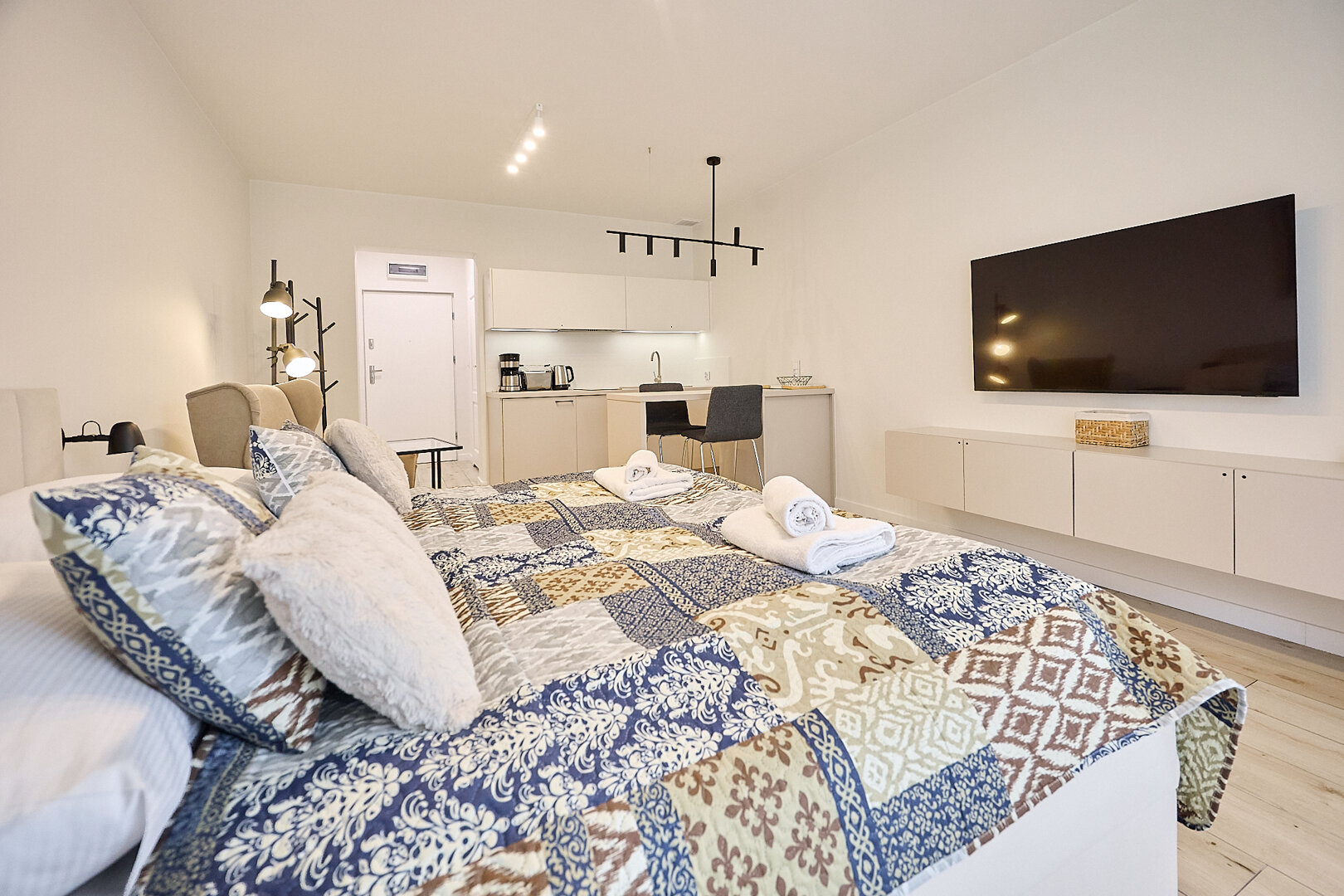Nowoczesne i przytulne studio idealne na krótki pobyt – zarówno dla pary, jak i osób podróżujących służbowo.